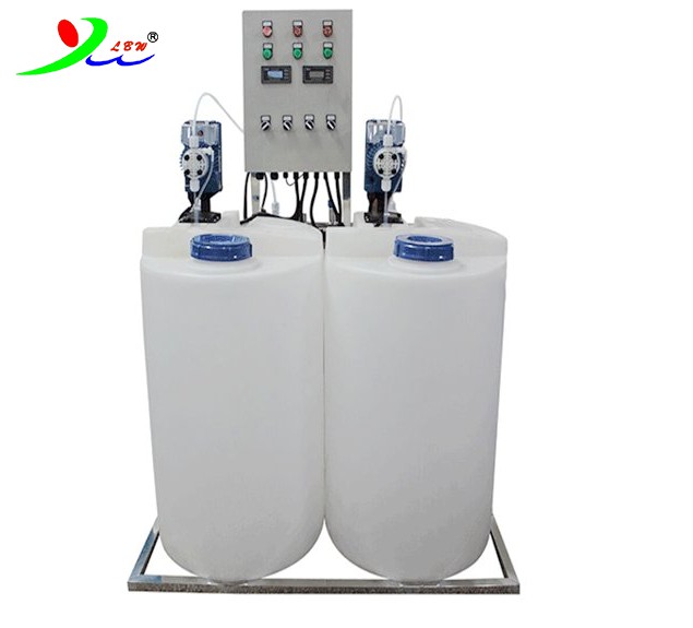目前,國內(nèi)循環(huán)水系統(tǒng)一般多數(shù)采用人工定時加藥,通過分析取得水中藥劑濃度有效值,以此為依據(jù)來調(diào)節(jié)計量泵的開度;或者通過對現(xiàn)場的排污量和補水量的計量,按一定的比例關(guān)系來進行藥劑的投加。由于系統(tǒng)容積很大,分析數(shù)據(jù)的滯后性、分析頻率的有限性以及系統(tǒng)存在泄漏等問題,要將水穩(wěn)劑的濃度穩(wěn)定控制在工業(yè)指標(biāo)范圍內(nèi),還存在著一定的困難。